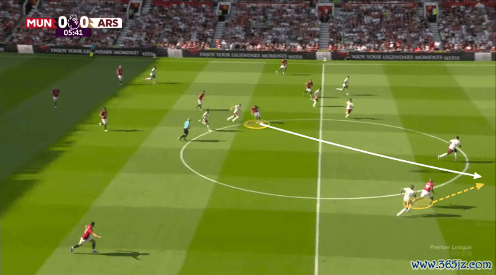 芒特还能送出大范围转移,把球交给弱侧的攻击手,这是阿莫林策略 的经典套路,在一侧攻击 ,然后快速 转到另一边,由10号位(姆贝莫)和边翼卫(迪奥古·达洛)形成以多打少的场面。内锋与边卫的协作 ,正是343体系的精髓,芒特拥有掌控这一场面的大局观。